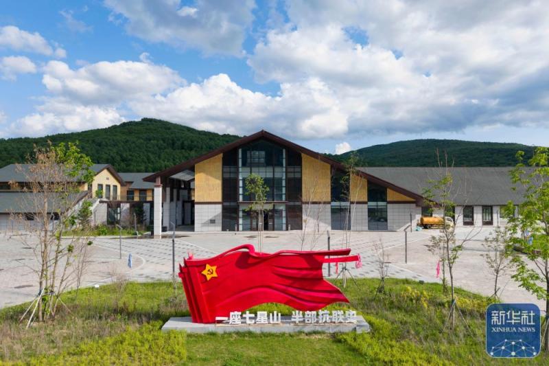 这是6月17日拍摄的七星山国家森林公园内的集贤县红色抗联体验馆外景(无人机照片)。