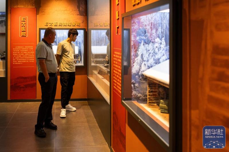 6月17日,游客在七星山国家森林公园内的集贤县红色抗联体验馆参观。